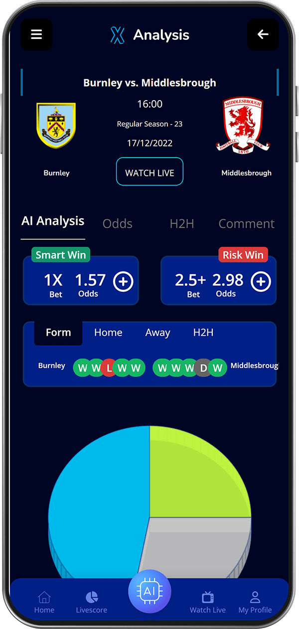 "XBET really helped me to build my winning strategy, it predicts outcome with more than 80% success rate. I'm really happy with it! I would like to recommend it to all experianced betting players."